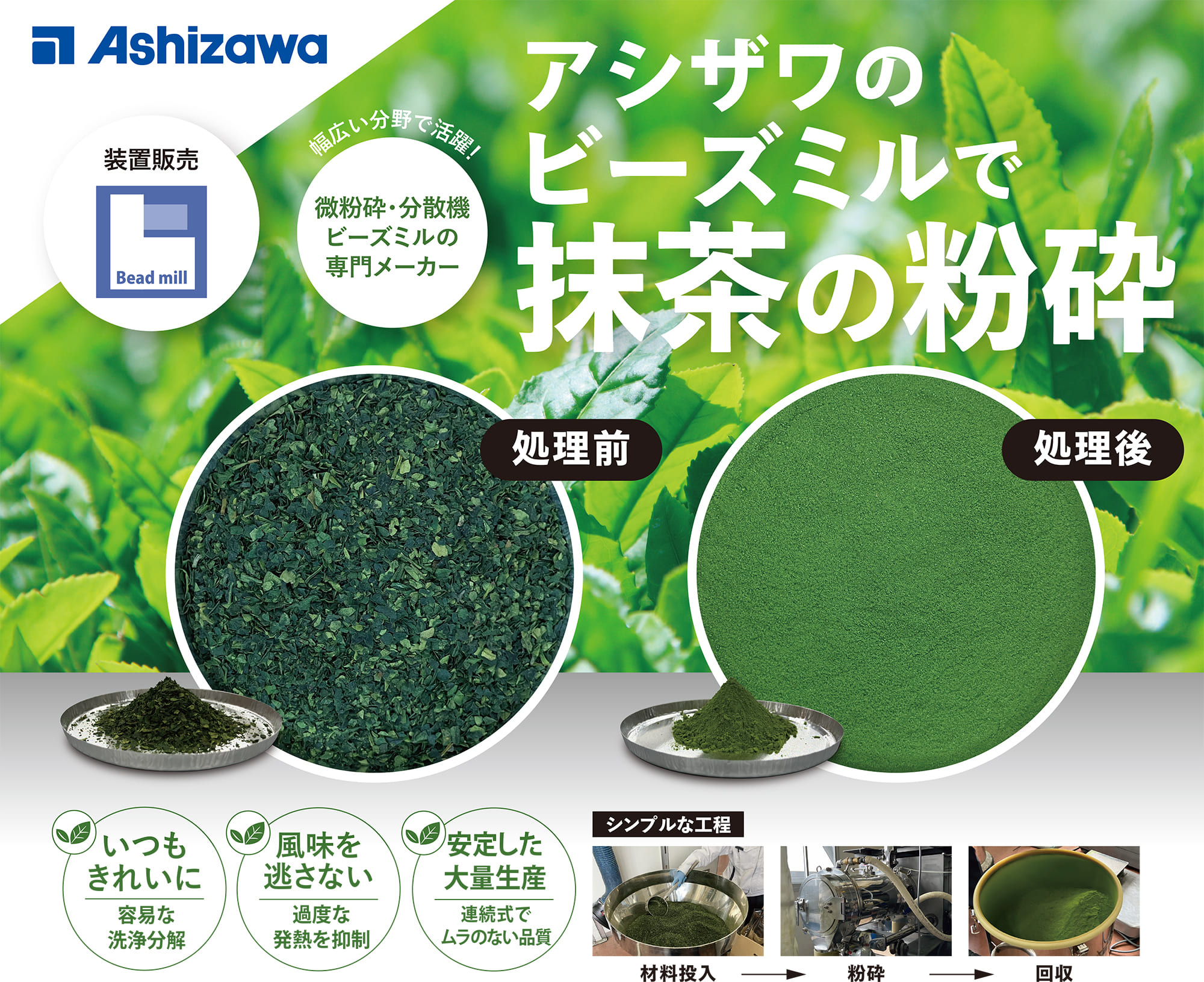 碾茶粉砕はアシザワ・ファインテックの抹茶専用ビーズミルにお任せください