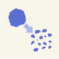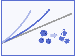 マイルド分散は一次粒子のサイズ、形状、結晶構造、表面状態などを維持したまま分散するアシザワ・ファインテックのオリジナル技術です。機能性粒子やナノサイズへの微細化に有効な方法です。